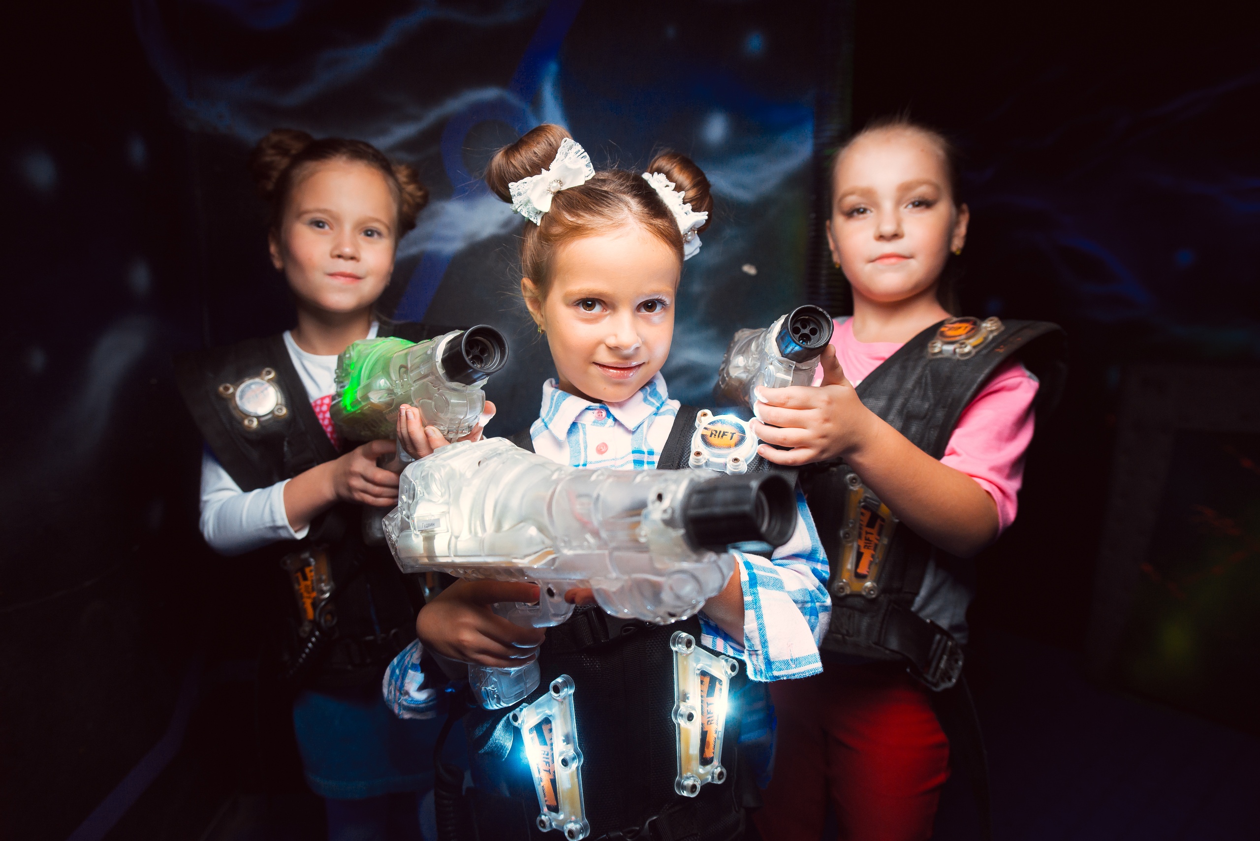 У нас отмечают Дни Рождения и девочки и мальчики. Девочки любят играть в лазертаг не меньше мальчишек. Игра тактическая и не требует физической силы, поэтому подходит всем детям от 6 лет. А также у нас есть квесты и анимационные программы, которые отлично подойдут для девочек!
